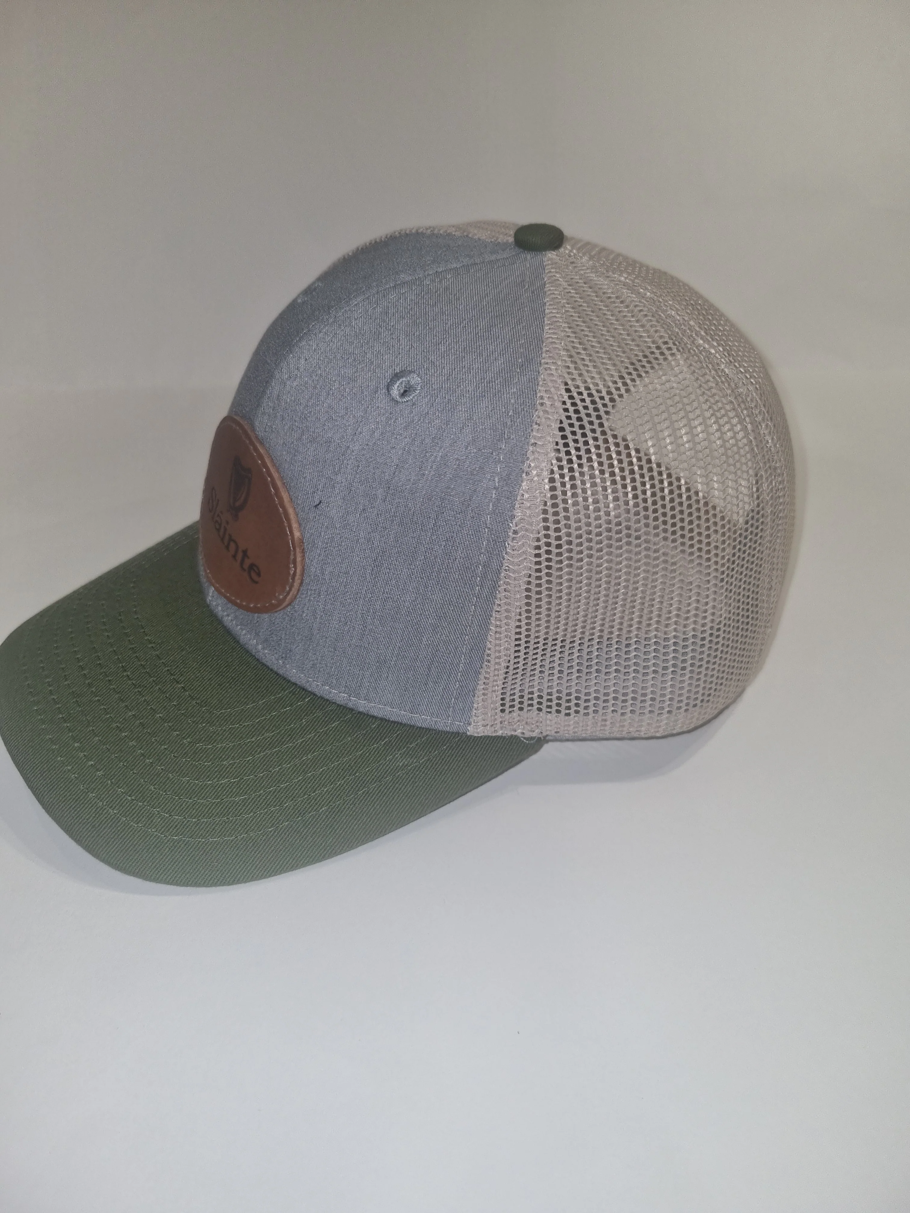 Made for us by Rustech Wood Company based down in Galway the Irish trucker caps come in a number of colours and different leather labels all sown on by hand. Shown here is the Irish Whiskey Taster.